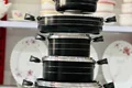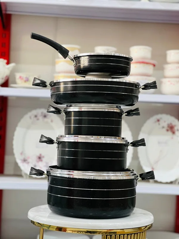 سرویس 8 پارچه قابلمه اسپینل شامل 3 عدد قابلمه در سایز های 20 - 24 - 28 به همراه یک عدد تابه دو دسته در سایز 28 و یک عدد تابه تک دسته در سایز 20 میباشد.