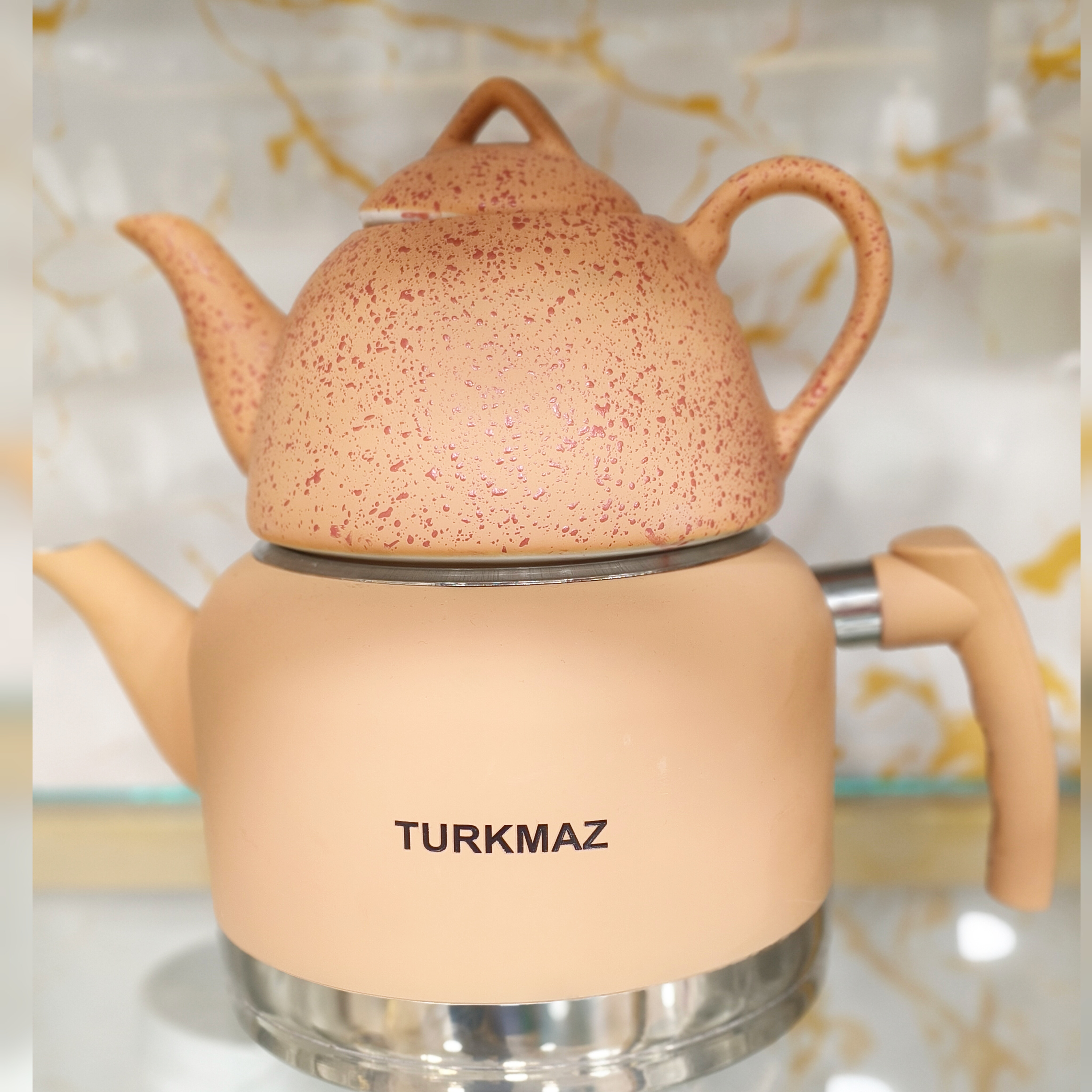 کتری قوری 4 لیتری ترکمازدارای طراحی بسیار زیبا در کنار کیفیت مثال زدنی میباشد , دسته استیل دوبل در کنار استفاده از قوری متناسب با بدنه ی کتری طراحی چشم نوازی را در بین انواع کتری قوری های لعابی به ارمغان آورده است.